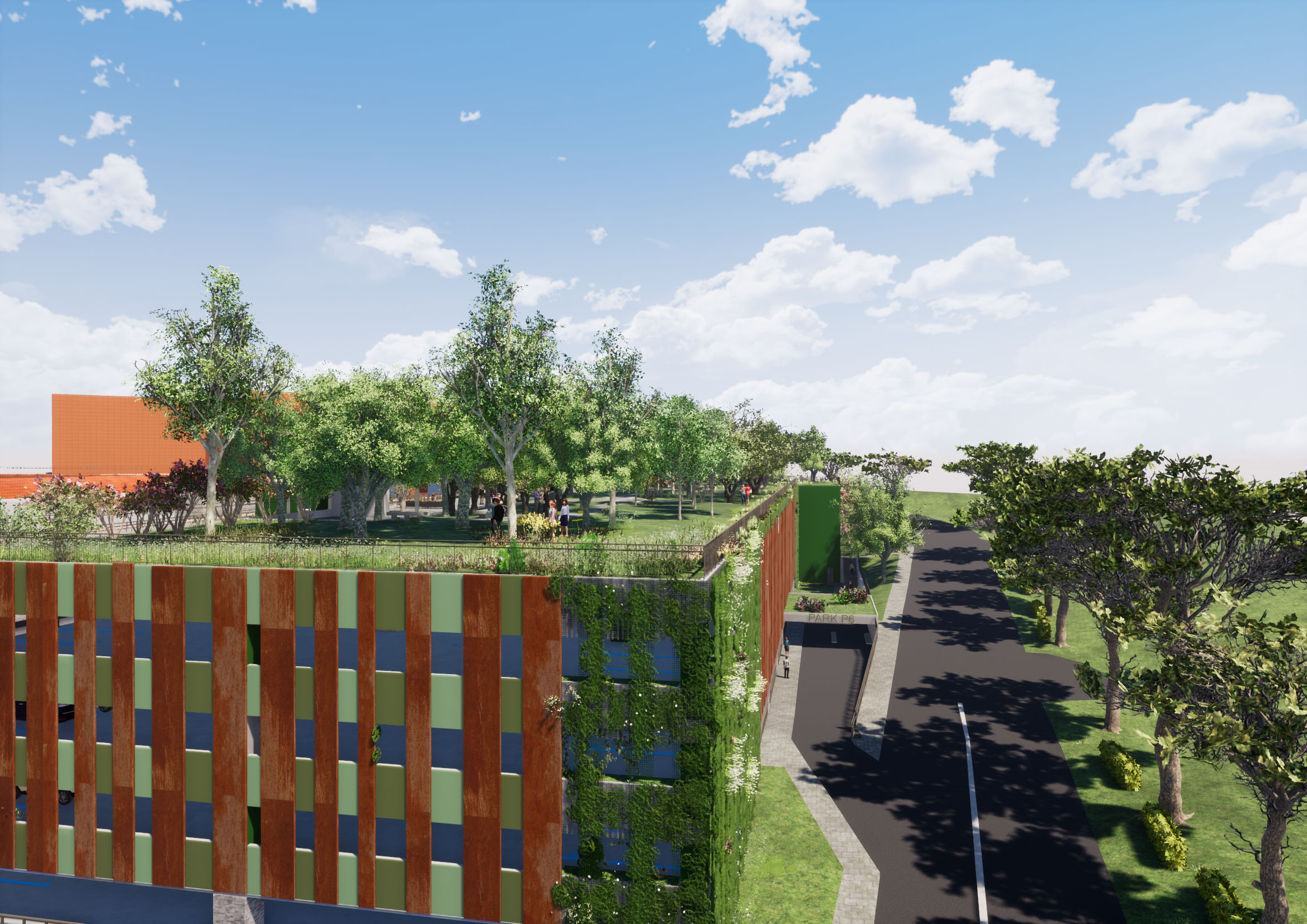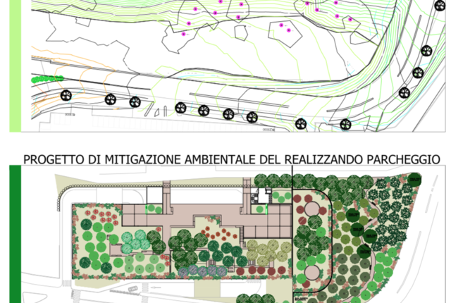 L’intervento si completa con la realizzazione di un edificio destinato a Polo Tecnologico e un nuovo Parcheggio Multipiano fuori terra con copertura a tetto pensile a verde. Particolare attenzione, eÌ? stata posta all’aspetto della progettazione del verde attraverso l’allestimento di nuove aree a verde pubblico e spazi aperti, esaltando le potenzialitaÌ? paesaggistiche del nuovo complesso e contribuendo alla riqualificazione ambientale del verde circostante, minimizzando l’impatto ambientale dei nuovi elementi edili insediati.