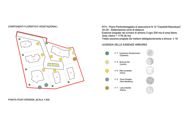 Il lotto in oggetto, ha previsto la realizzazione di n°6 villini distribuiti su un’area trapezoidale in lieve pendenza.