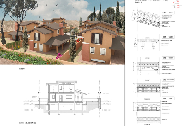 Realizzazione di un complesso residenziale composto da 3 ville unifamiliari e 3 bifamiliari in zona Casalotti-Mezzalupo