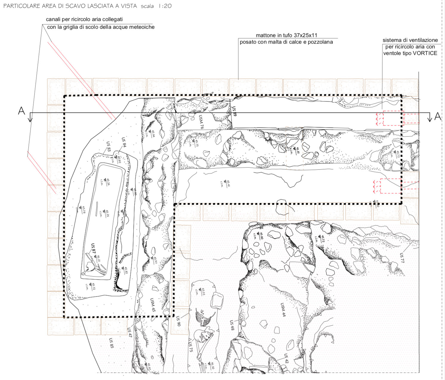 Al termine degli scavi, in concerto con la Soprintendenza, si è deciso di lasciare a vista parte dei reperti rinvenuti, avendo già la zona una connotazione di interesse archeologico particolarmente importante.