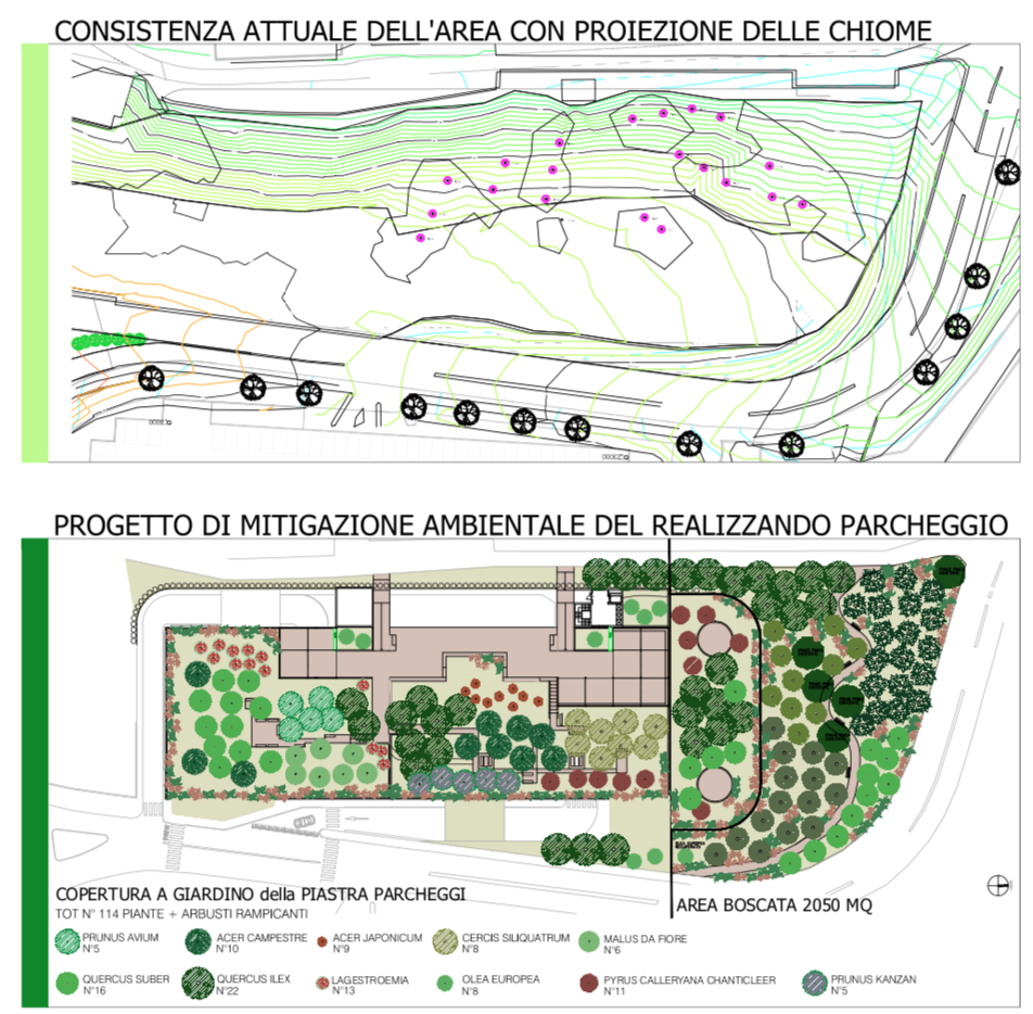 L’intervento si completa con la realizzazione di un edificio destinato a Polo Tecnologico e un nuovo Parcheggio Multipiano fuori terra con copertura a tetto pensile a verde. Particolare attenzione, eÌ? stata posta all’aspetto della progettazione del verde attraverso l’allestimento di nuove aree a verde pubblico e spazi aperti, esaltando le potenzialitaÌ? paesaggistiche del nuovo complesso e contribuendo alla riqualificazione ambientale del verde circostante, minimizzando l’impatto ambientale dei nuovi elementi edili insediati.