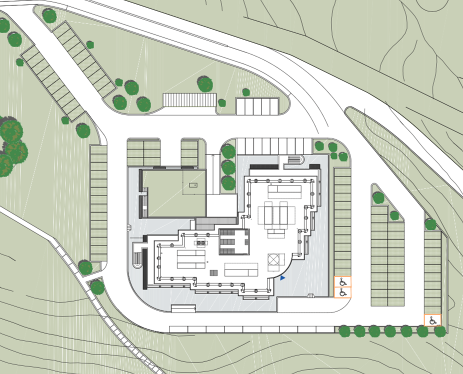 L’ampliamento del piano interrato interessa anche la piastra esterna adibita a parcheggio che saraÌ? oggetto di generale riassetto finalizzato a massimizzare posti auto e implementare il verde.