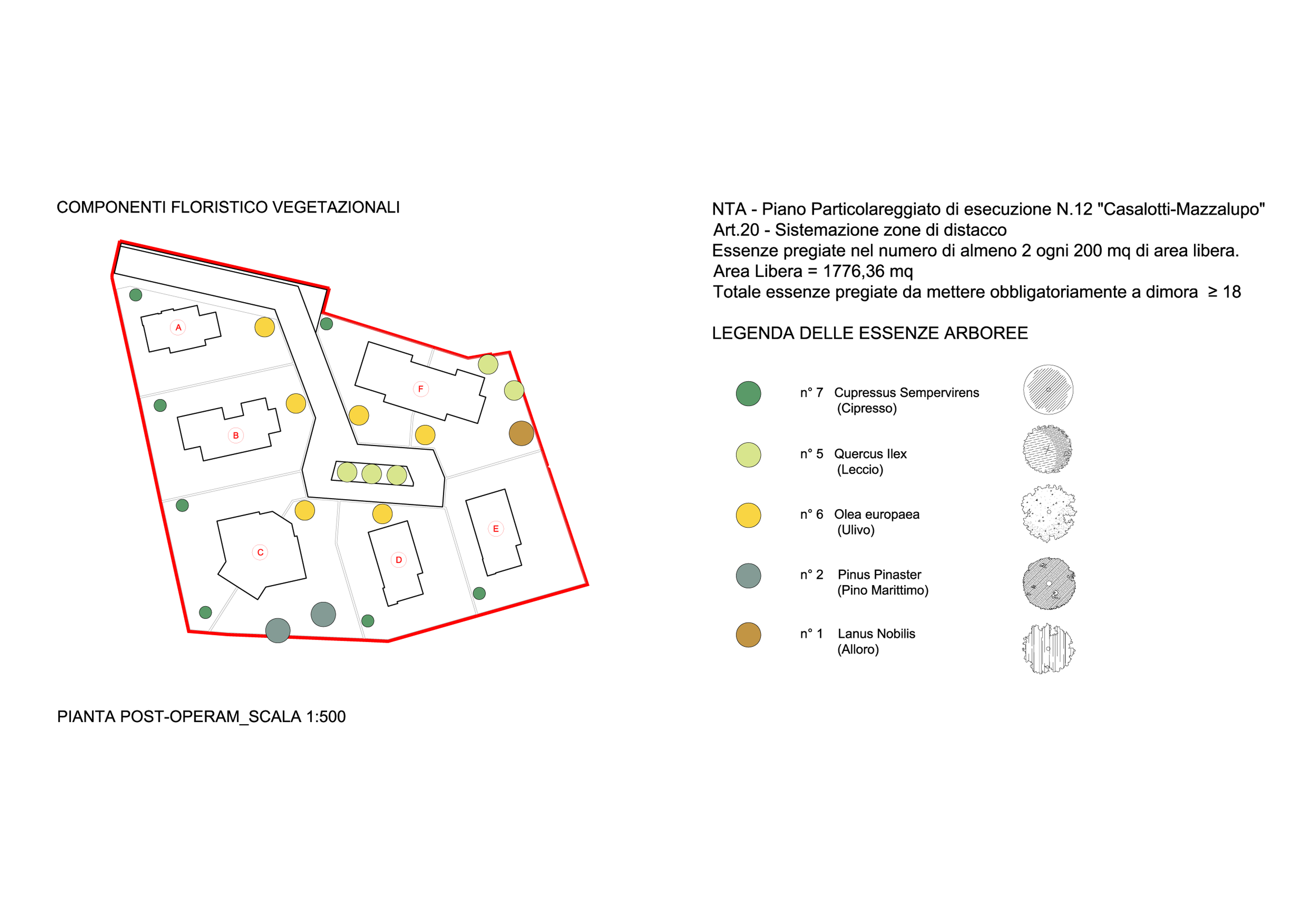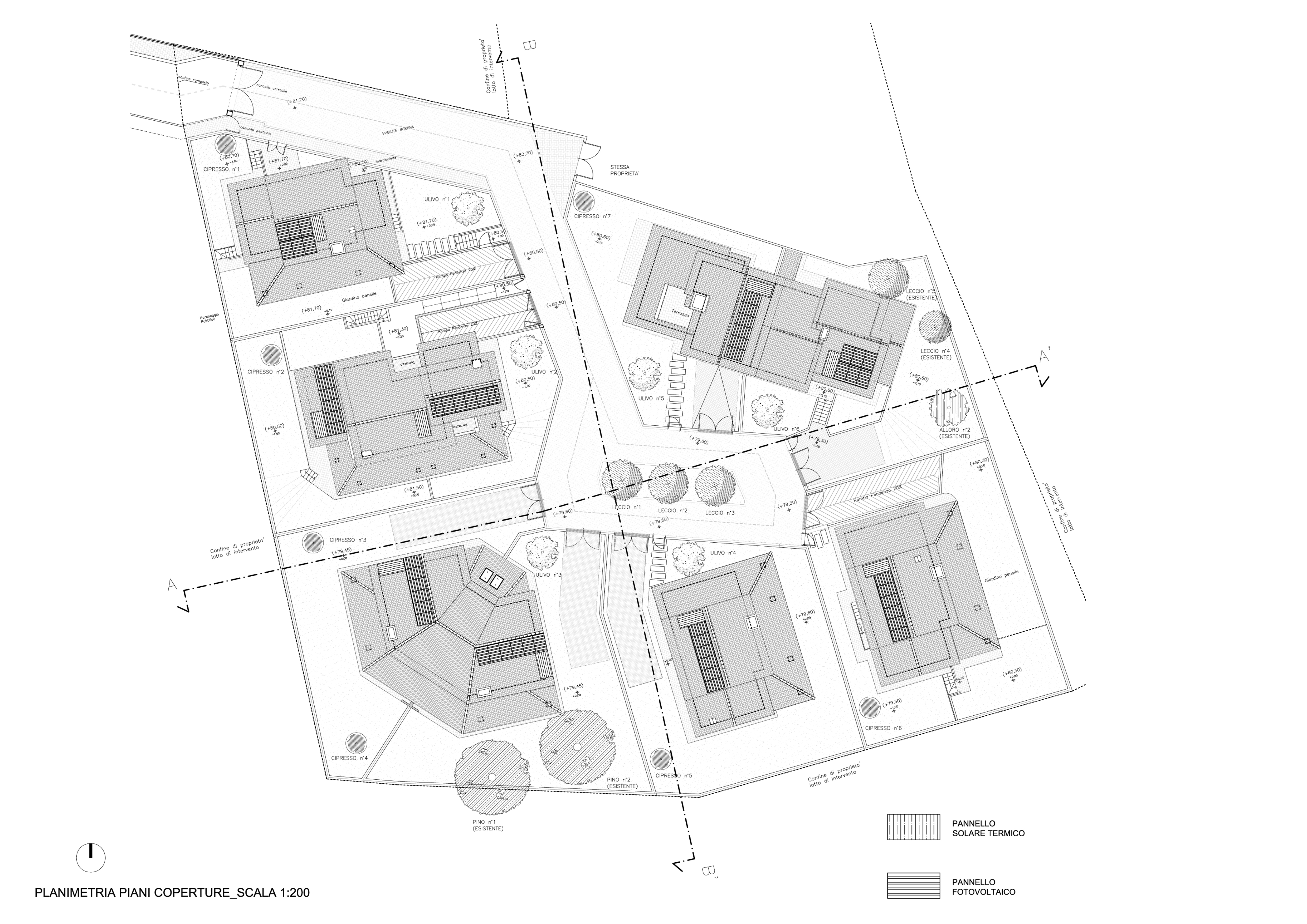 Il lotto in oggetto, ha previsto la realizzazione di n°6 villini distribuiti su un’area trapezoidale in lieve pendenza.
