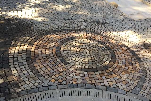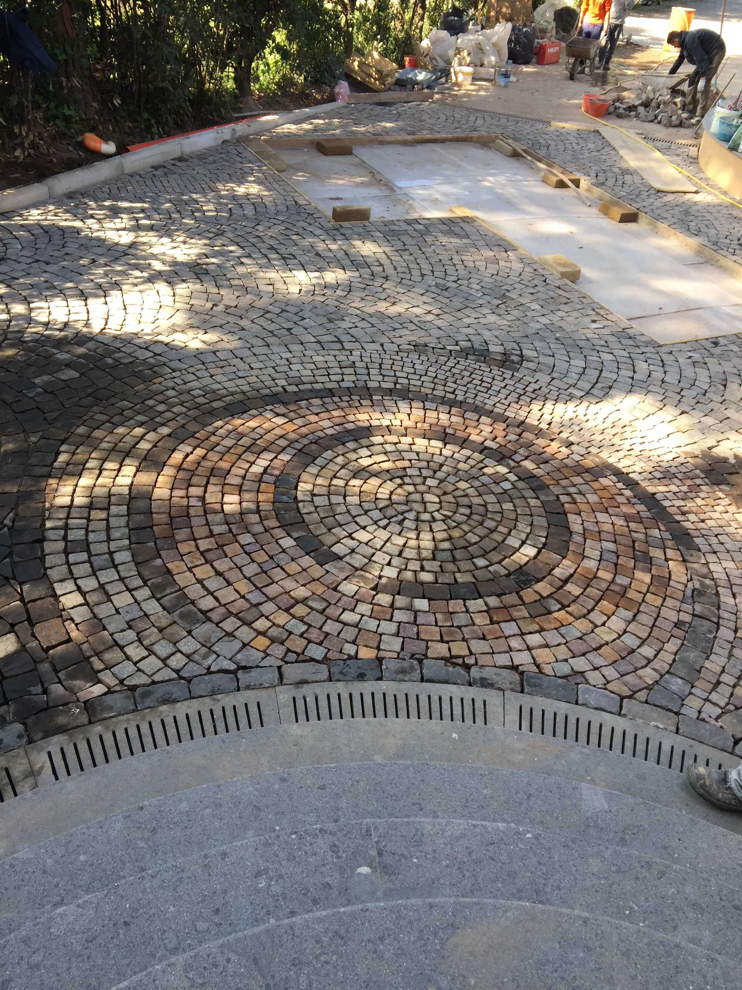 La diversa cromia e posa della pavimentazione in basalto hanno permesso inoltre di lasciare una “traccia” dei ritrovamenti archeologici che non è stato possibile lasciare a vista.