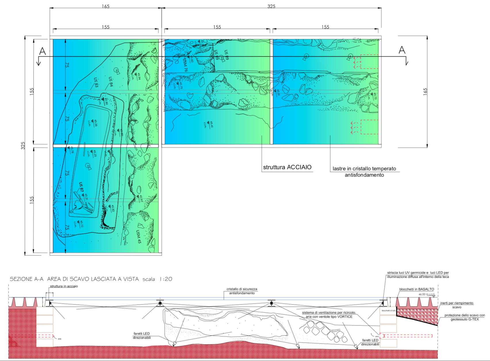 Al termine degli scavi, in concerto con la Soprintendenza, si è deciso di lasciare a vista parte dei reperti rinvenuti, avendo già la zona una connotazione di interesse archeologico particolarmente importante.